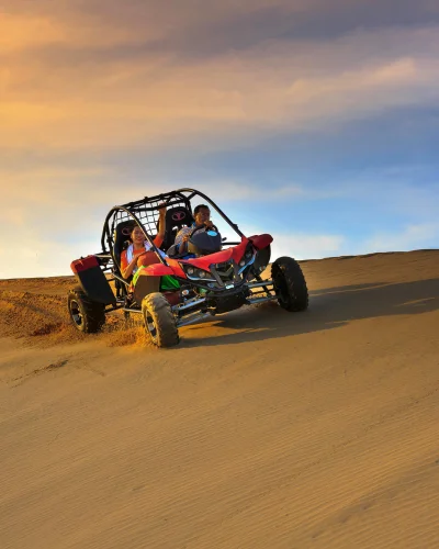 Experience an adrenaline-pumping ride across the red dunes with skilled drivers.