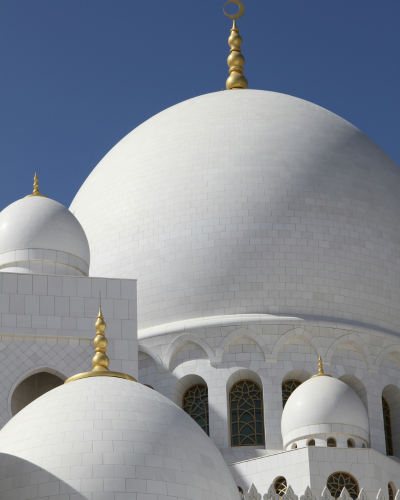 Witness the grandeur of Sheikh Zayed Mosque as sunlight dances on its white marble domes!